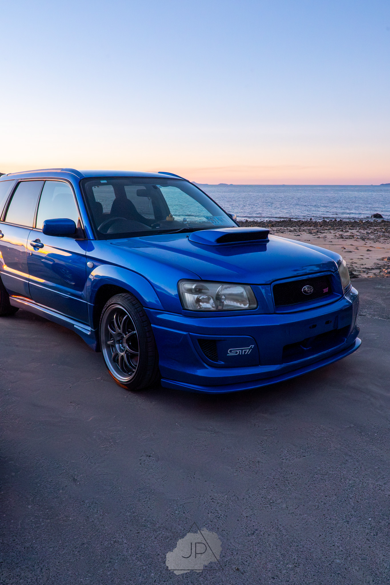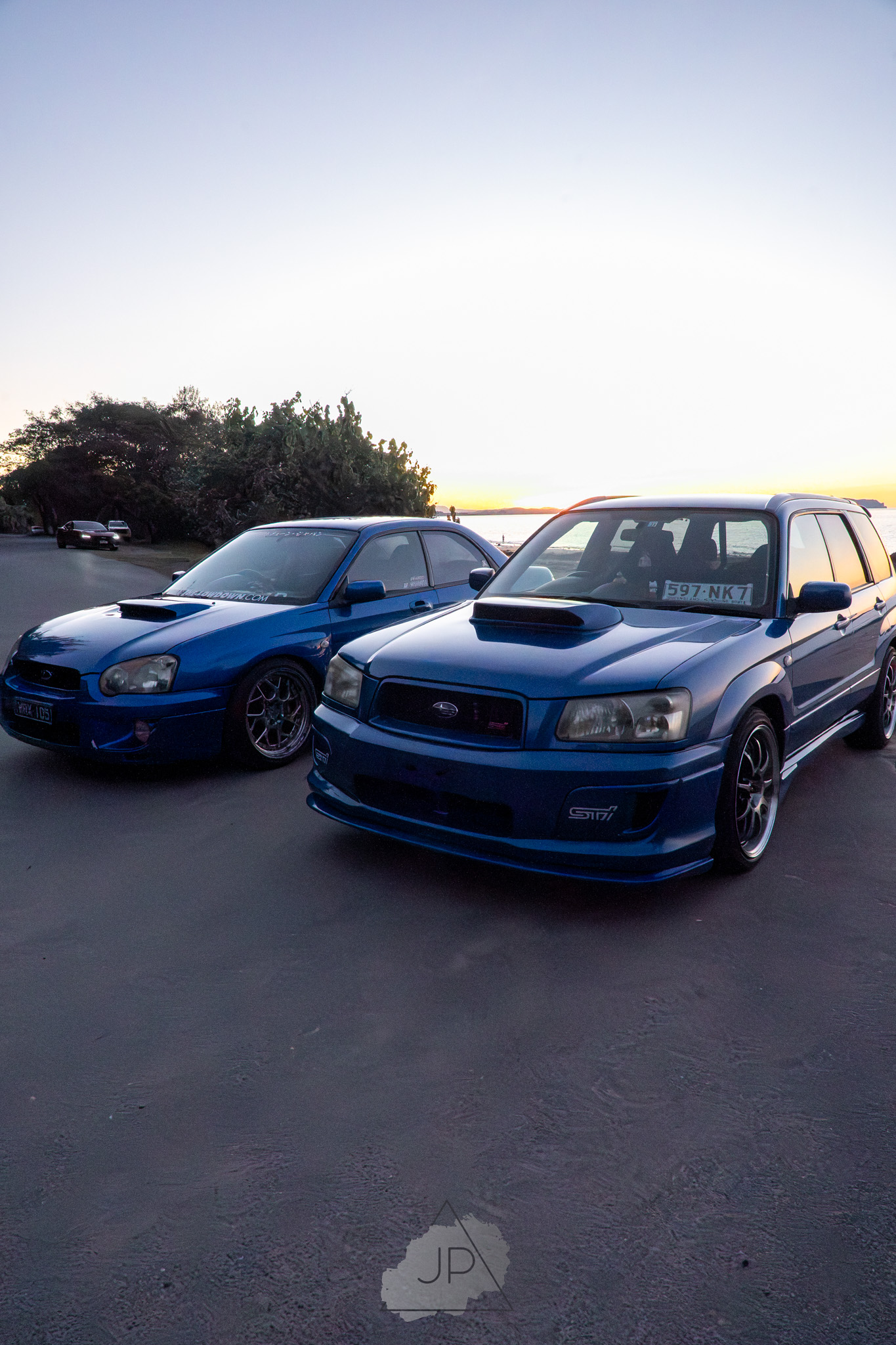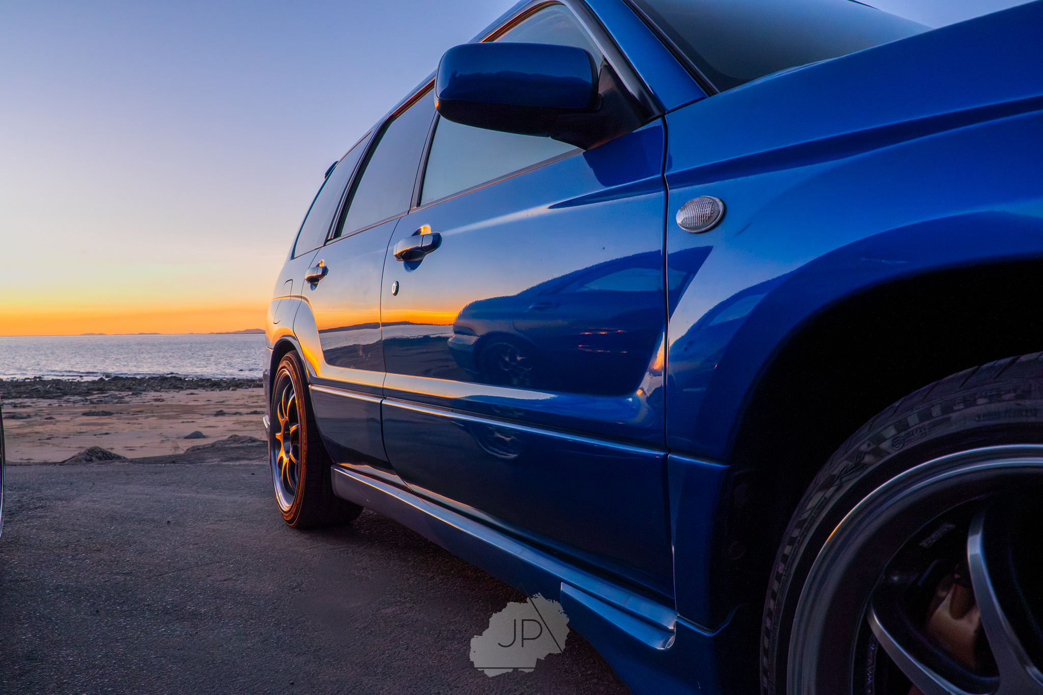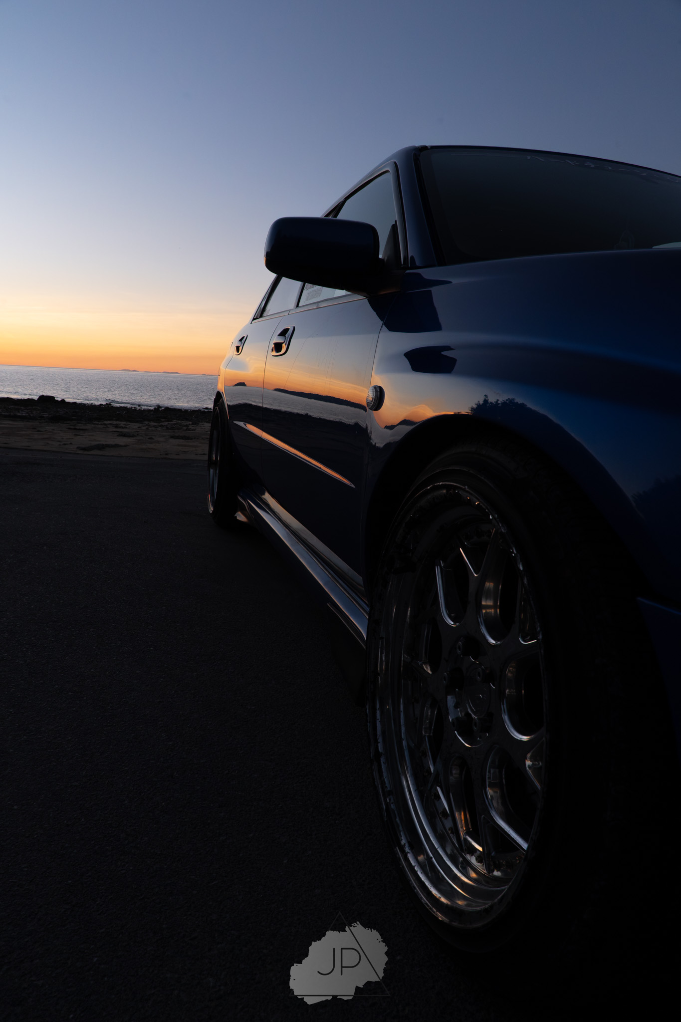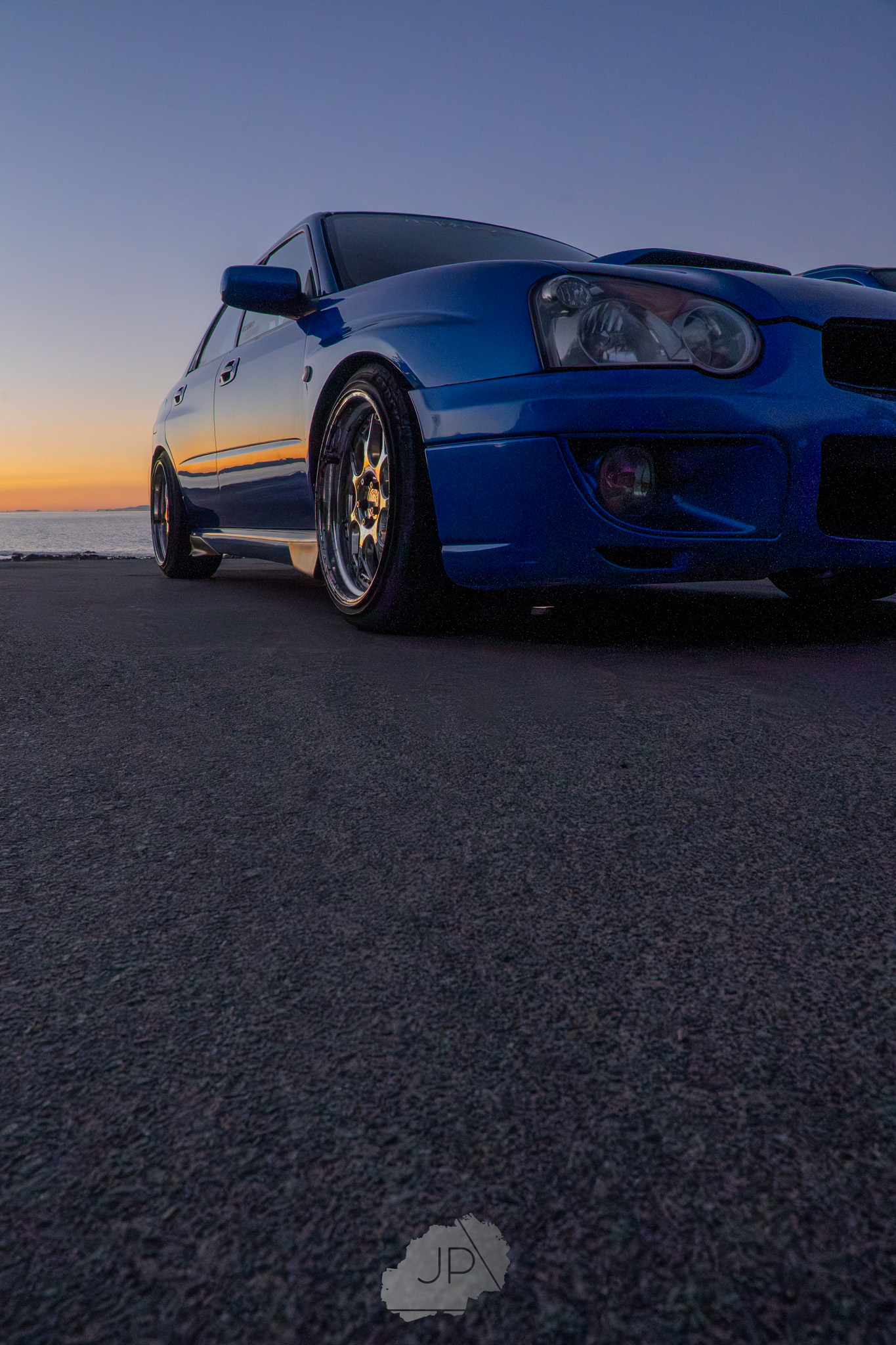 Sunset paints a backdrop of deep blues and golds as modified Subarus and sleek sports cars line the shore. It’s about mood, motion, and the calm roar of cars meeting ocean light.