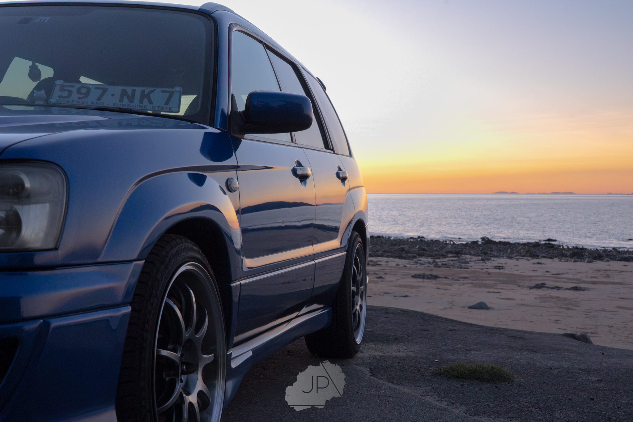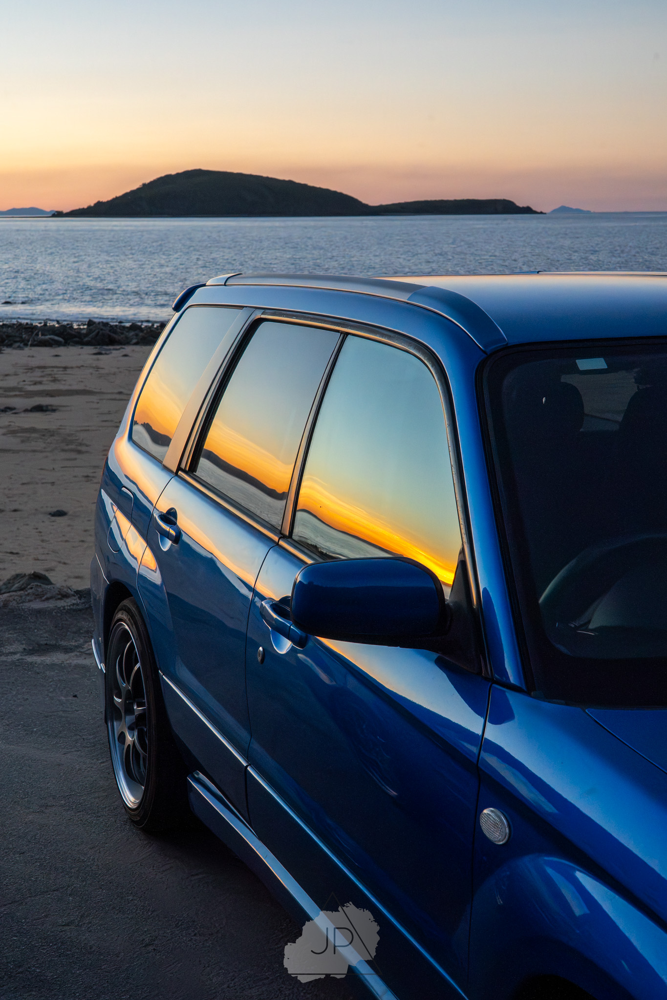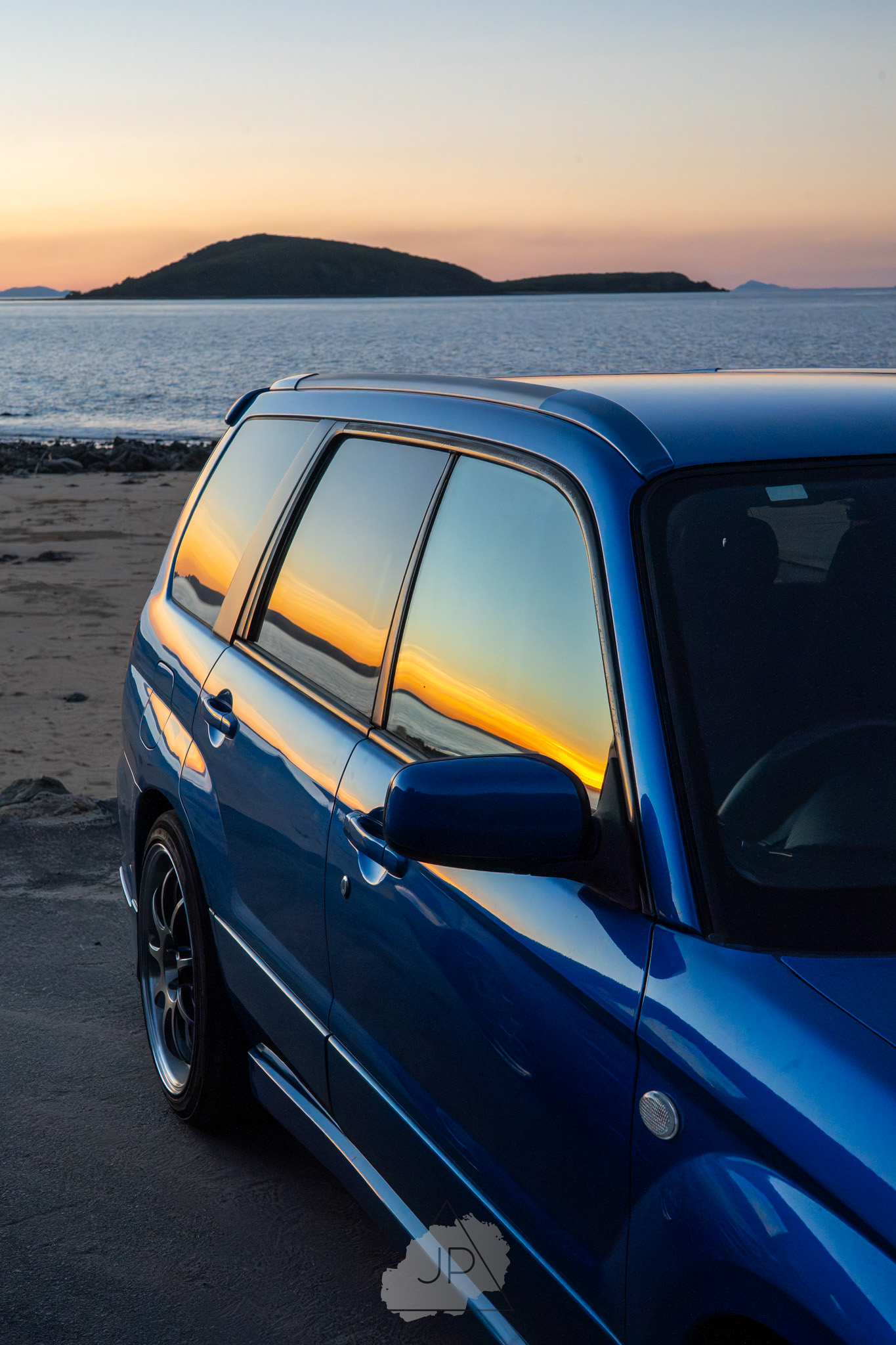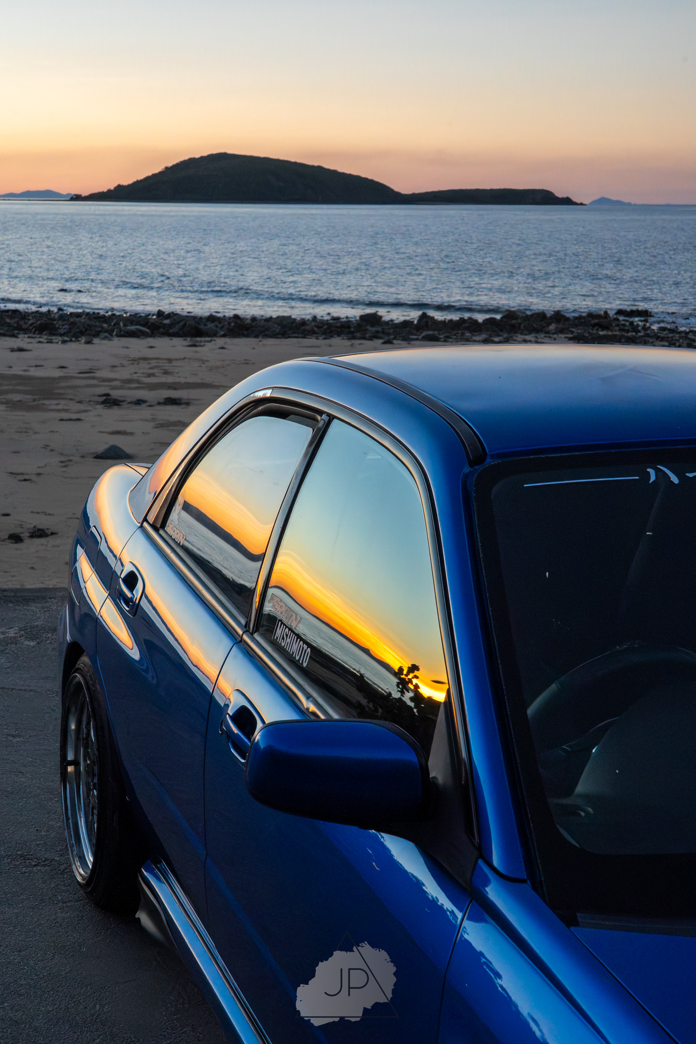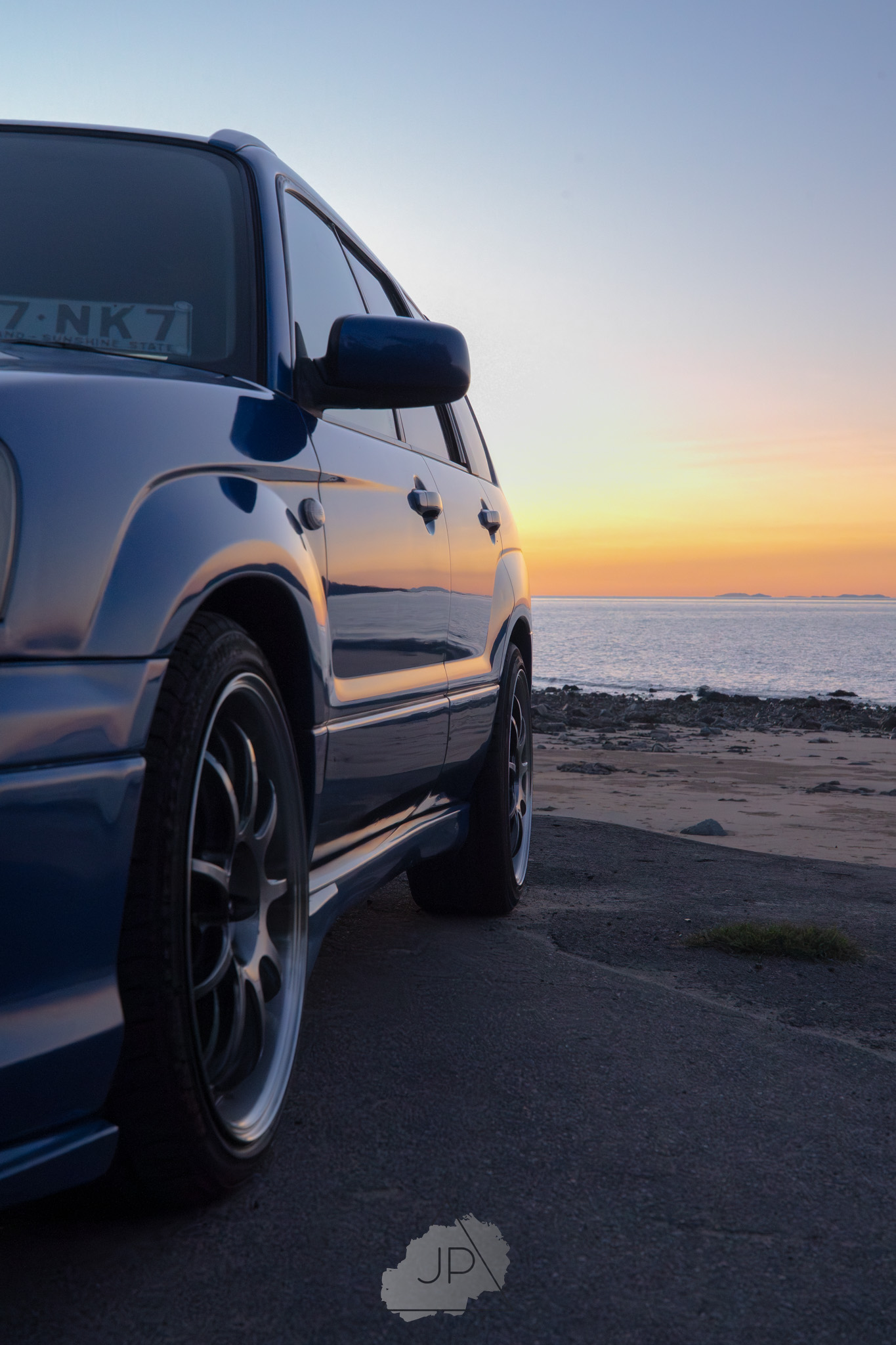 Sunset paints a backdrop of deep blues and golds as modified Subarus and sleek sports cars line the shore. It’s about mood, motion, and the calm roar of cars meeting ocean light.