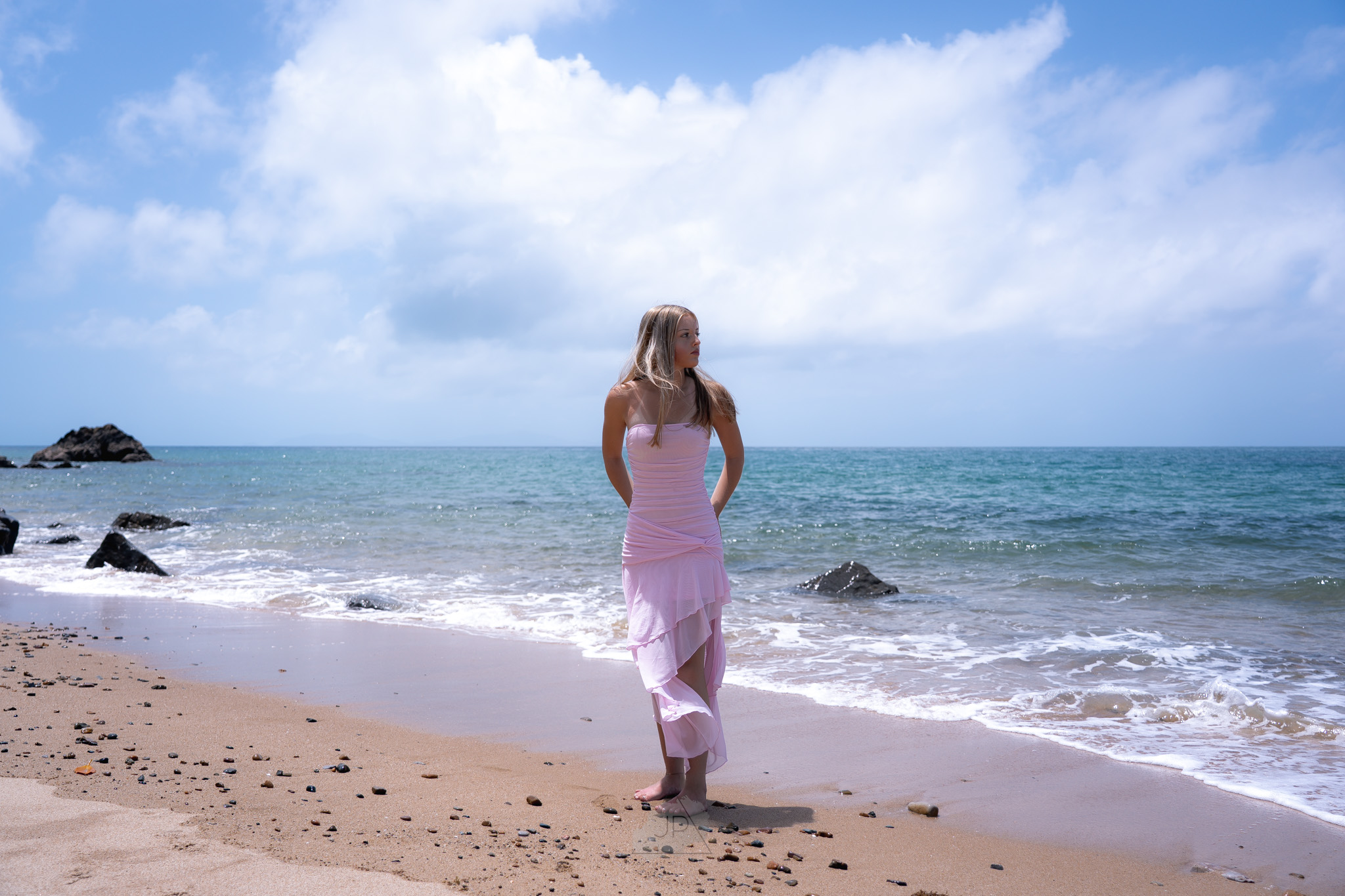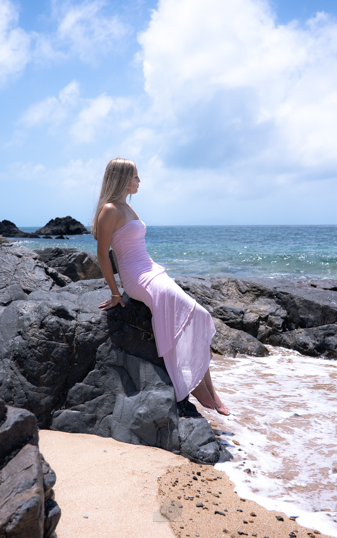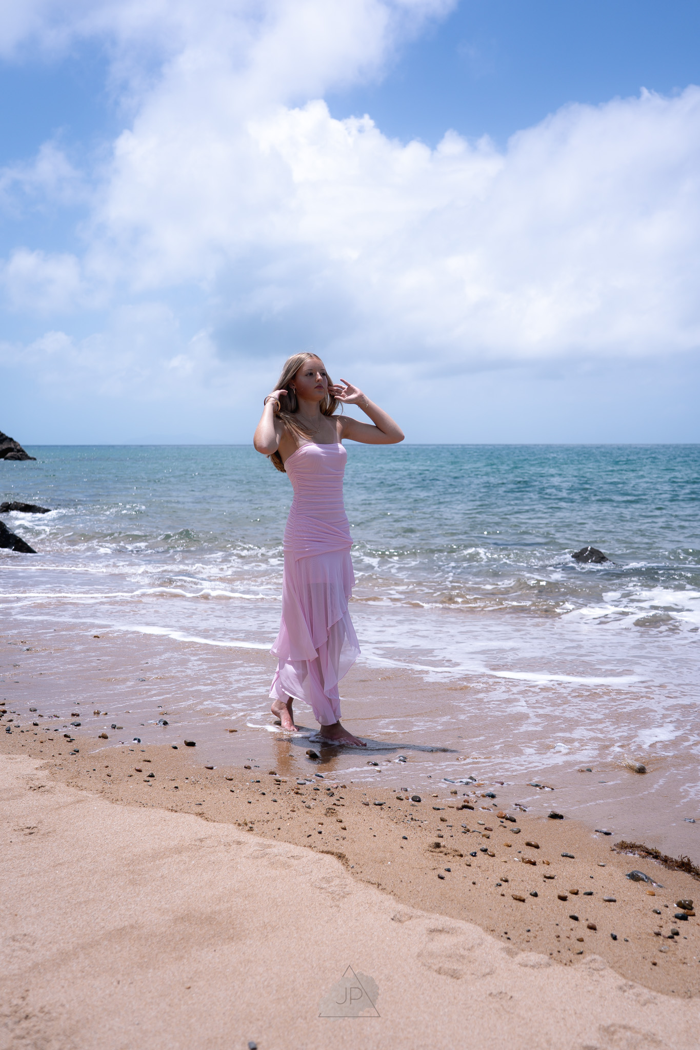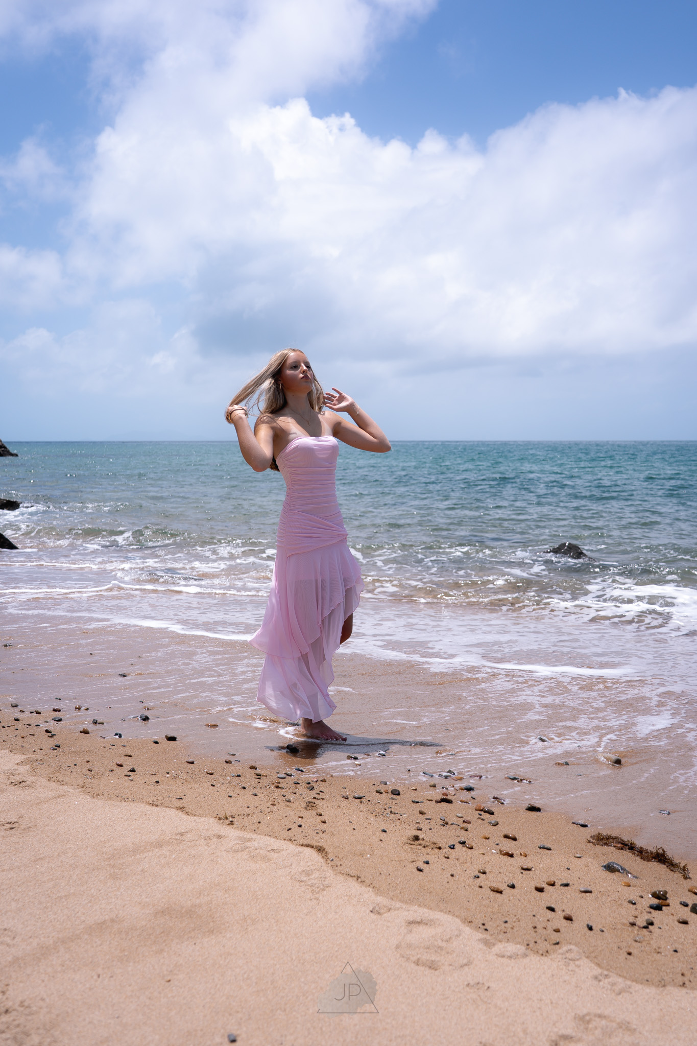 The ocean breeze and golden tones added a sense of calm and freedom, creating a perfect balance between elegance and authenticity. From gentle poses by the shoreline to candid moments in the water’s edge, the session reflected both her personality and potential.