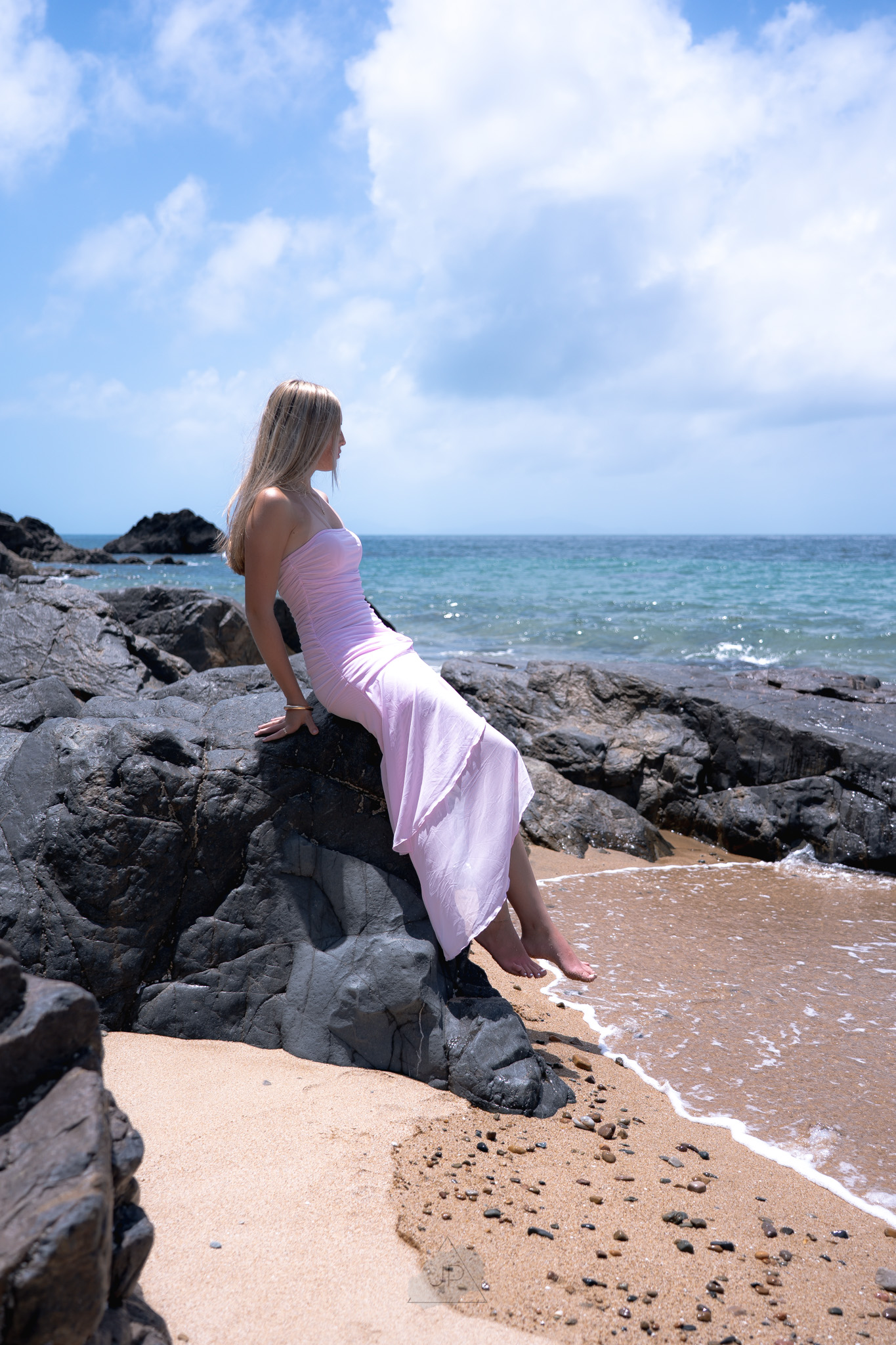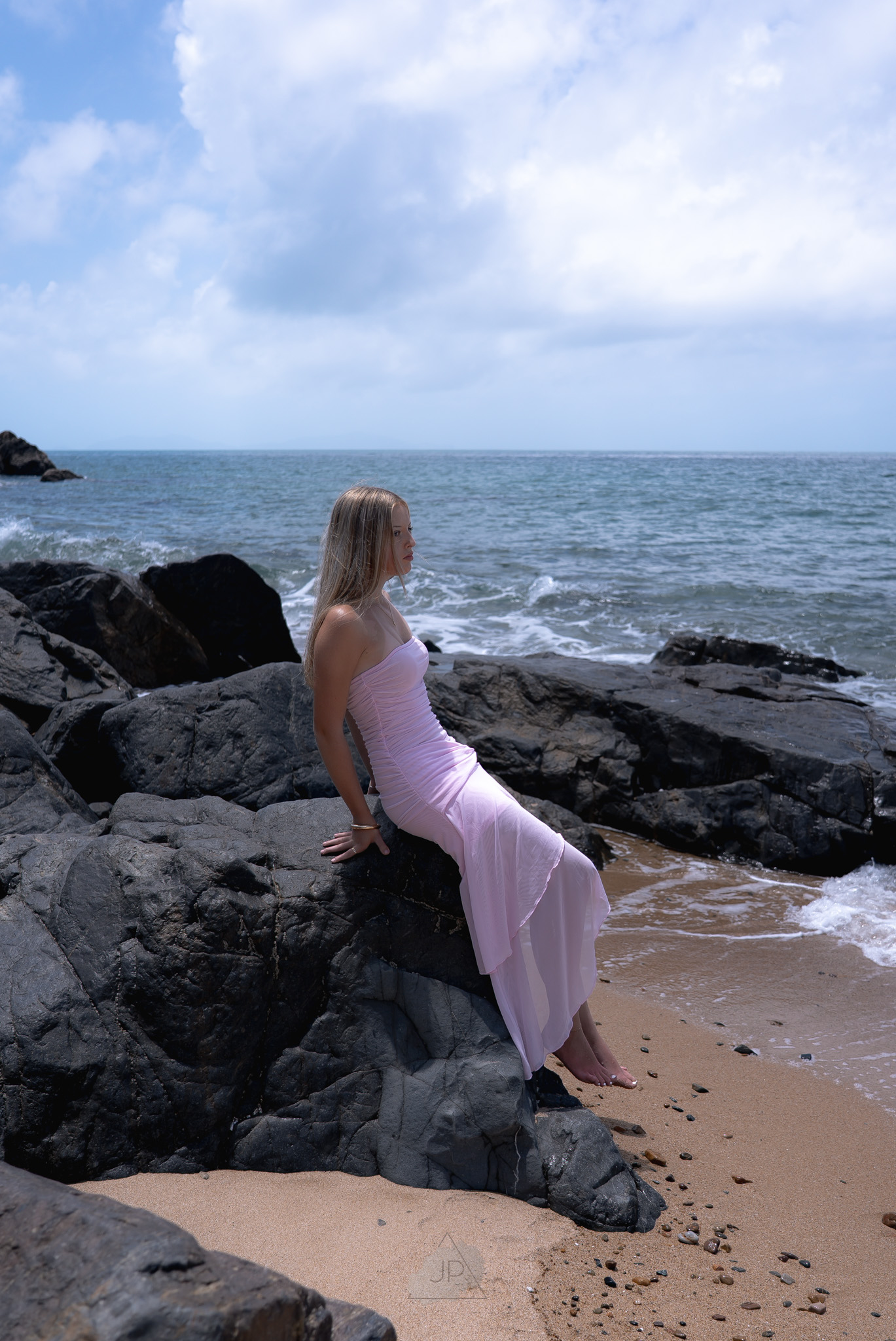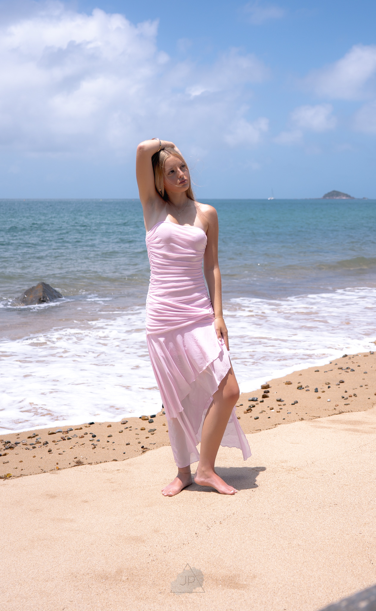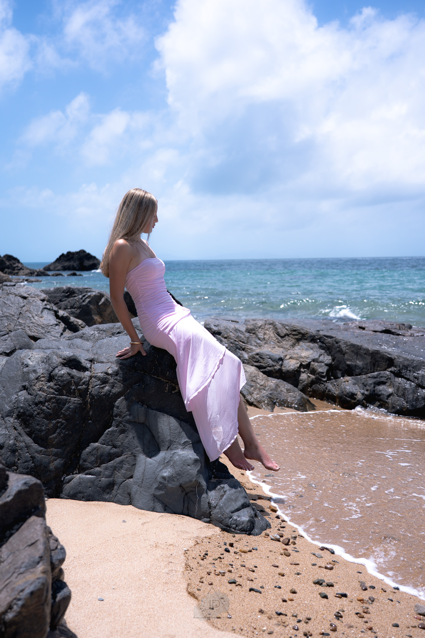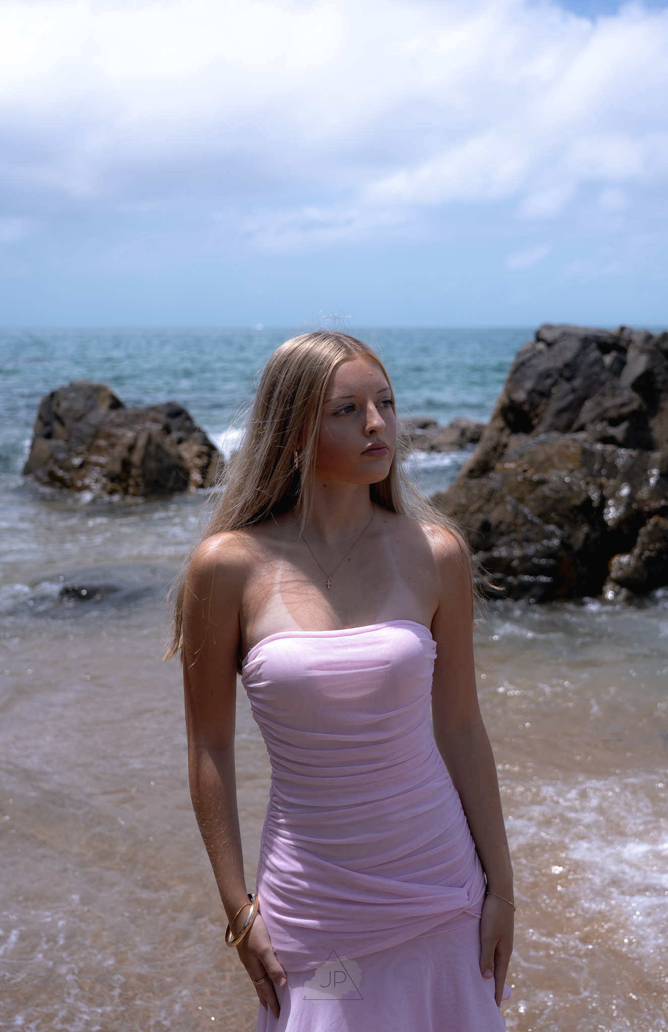 The ocean breeze and golden tones added a sense of calm and freedom, creating a perfect balance between elegance and authenticity. From gentle poses by the shoreline to candid moments in the water’s edge, the session reflected both her personality and potential.